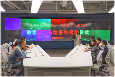 2021年11月5日下午,“QY球友会与无锡日报报业集团共建教学实习基地”签约揭牌仪式在无锡日报报业集团隆重举行。无锡日报报业集团党委书记、总裁、社长、总编辑张军,党委副书记、常务副总裁陈锡初,党委委员、副总裁、副总编辑王粤海,球友会官方网站公司党委书记姚剑英,副经理杨晖,副经理于书娟出席签约揭牌仪式,无锡日报报业集团多名媒体负责人、QY球友会老师和同学们出席此次仪式。仪式由无锡日报报业集团无锡观察融媒中心记者桑佳欣主持。