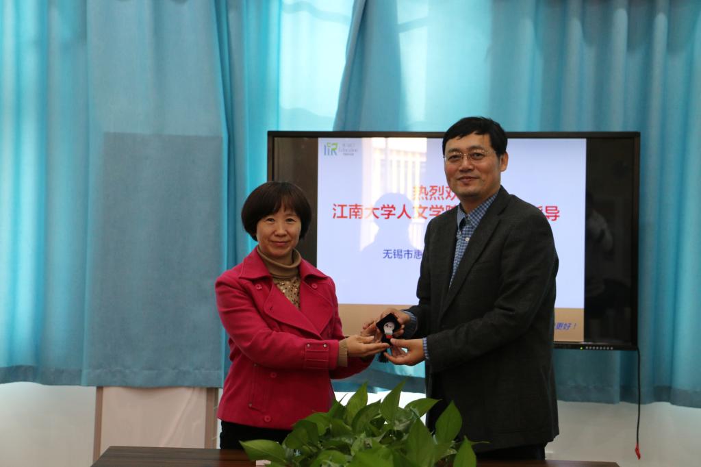 姚剑英代表学院向韩荣寨员工赠送“天下江南人”纪念章